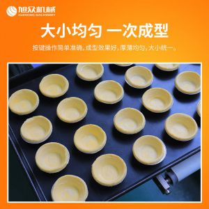 DT-04全自動蛋撻成型機,2-3秒快速成型。該機應用于傳統蛋撻、葡式蛋撻及其它須印型之產品突破傳統用手捏,采用微電子控制成型,一個2-3秒,高效率。大小均勻一次成型按鍵操作簡單準確,成型效果好,厚薄均勻,大小統-。層層起酥層次分明好葡式蛋撻皮,千層酥皮、松脆可口、唇齒留香、一口難忘。