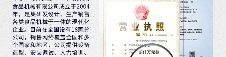 廣州旭眾食品機械有限公司是一家集科研開發,生產設計,營銷服務為一體的現代化生產企業?,F代化生產車間,精湛制造技術,所產機械歷經市場重重考驗,不斷贏得海內外客戶的贊譽。
