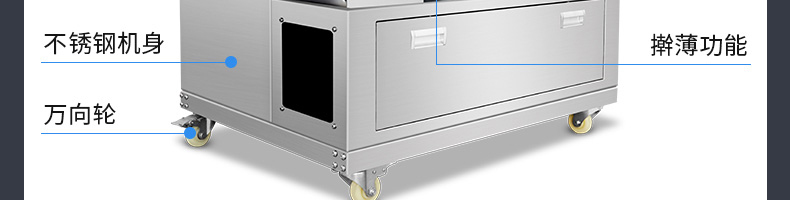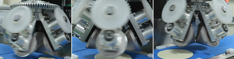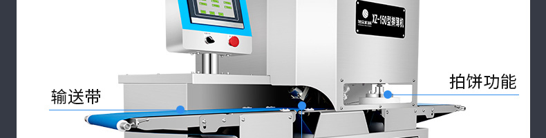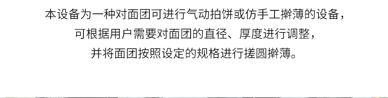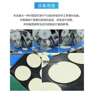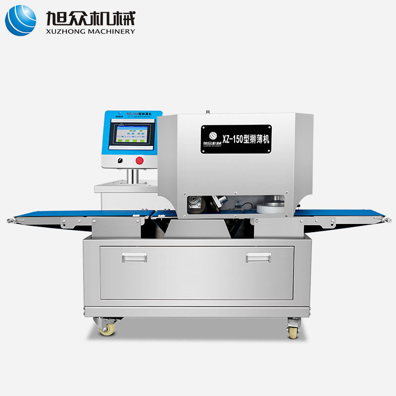 XZ-150型搟薄機,為一種對面團可進行氣動拍餅或仿手工搟薄的設備,可根據用戶需要對面團的直徑、厚度進行調整并將面團按照設定的規格進行搓圓摔搟薄。
