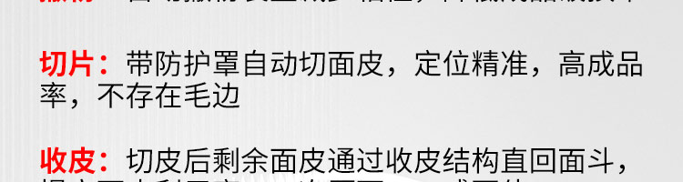JGB-10型一體式餃子機,制皮成型一體餃子機,科技化生產/人性化設計。餃型可蒸、可炸、可煮,可適應不同場合的客戶需求。功能、智能一體,以自動化科技與過硬質量貼心服務。