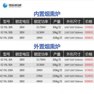 名稱XZ-YXL-50B煙熏爐 電源380V 功率16.5KW 產(chǎn)量50kg/次 尺寸1150*1150*1860mm 重量聯(lián)系銷售員 規(guī)格聯(lián)系銷售員 其他