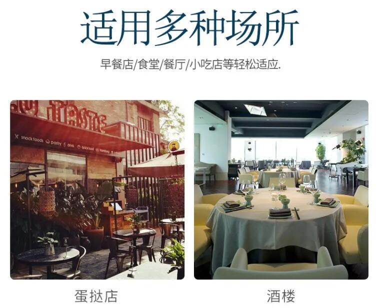 適用于賓館、飯店、學校、機關、企業食堂、早餐工程店及速凍食品廠。