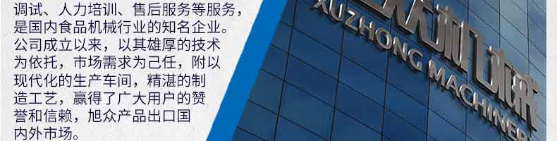 廣州旭眾食品機械有限公司是一家集科研開發,生產設計,營銷服務為一體的現代化生產企業。現代化生產車間,精湛制造技術,所產機械歷經市場重重考驗,不斷贏得海內外客戶的贊譽。