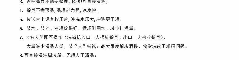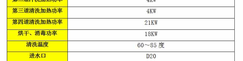 名稱6200洗碗機 電源380V 功率51kW 產量請下拉查看參數 尺寸6200×850×1630mm 重量 規格 其他