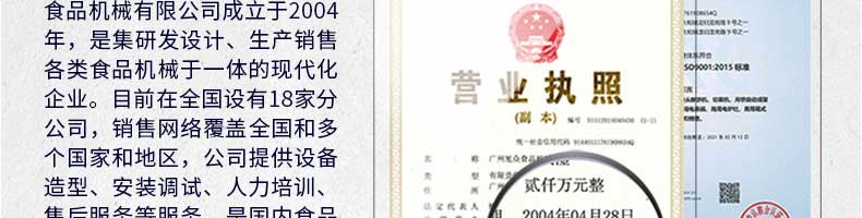 廣州旭眾食品機械有限公司是一家集科研開發(fā),生產(chǎn)設(shè)計,營銷服務(wù)為一體的現(xiàn)代化生產(chǎn)企業(yè)。現(xiàn)代化生產(chǎn)車間,精湛制造技術(shù),所產(chǎn)機械歷經(jīng)市場重重考驗,不斷贏得海內(nèi)外客戶的贊譽。