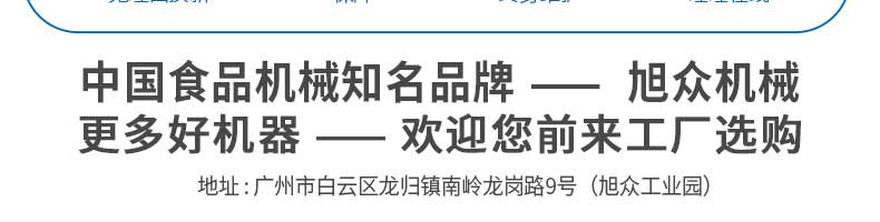 廣州旭眾食品機械有限公司是一家集科研開發,生產設計,營銷服務為一體的現代化生產企業。現代化生產車間,精湛制造技術,所產機械歷經市場重重考驗,不斷贏得海內外客戶的贊譽。