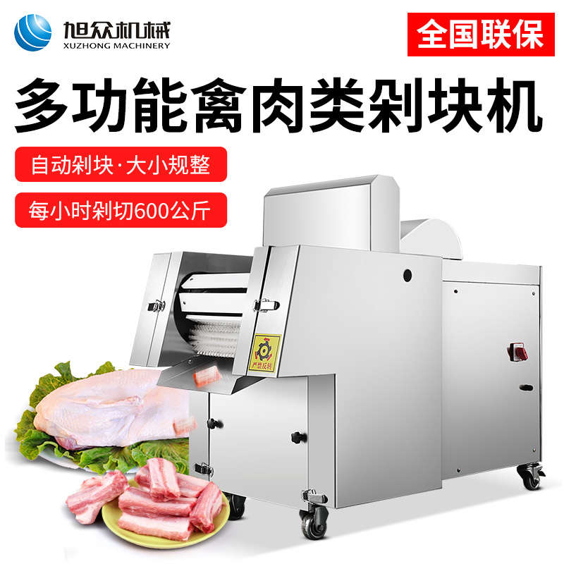 XZW-130禽肉類剁塊機,手工剁肉的煩惱人工切骨頭費時費力,效率低并且人工成本高,而且也是一個危險程度高的活,尤其是切大骨頭的時候,一不小心就會傷到手手工剁肉費時費力成本高。旭眾禽肉類剁塊機幫你解決手工煩惱每小時可剁切600公斤。