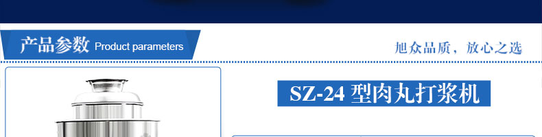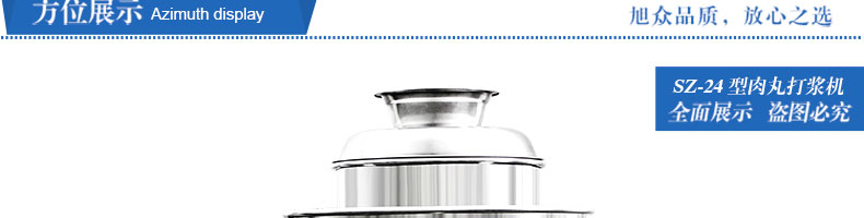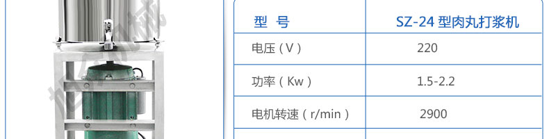 SZ-24型高速肉丸打漿機,高速肉丸打漿機選用不銹鋼,生產過程中改善了肉質脂肪纖維,生產出的丸子外表光滑細膩、低脂、口感爽脆、彈性好、韌性好,是潮州肉丸的專用打漿機。