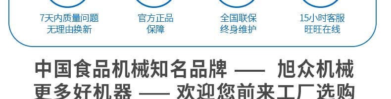 廣州旭眾食品機(jī)械有限公司是一家集科研開發(fā),生產(chǎn)設(shè)計(jì),營(yíng)銷服務(wù)為一體的現(xiàn)代化生產(chǎn)企業(yè)。現(xiàn)代化生產(chǎn)車間,精湛制造技術(shù),所產(chǎn)機(jī)械歷經(jīng)市場(chǎng)重重考驗(yàn),不斷贏得海內(nèi)外客戶的贊譽(yù)。
