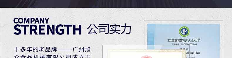 廣州旭眾食品機械有限公司是一家集科研開發,生產設計,營銷服務為一體的現代化生產企業。現代化生產車間,精湛制造技術,所產機械歷經市場重重考驗,不斷贏得海內外客戶的贊譽。